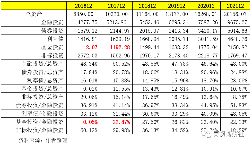 (二)金融投資/總資產(chǎn):位于45-50%之間,超過(guò)50%為債券